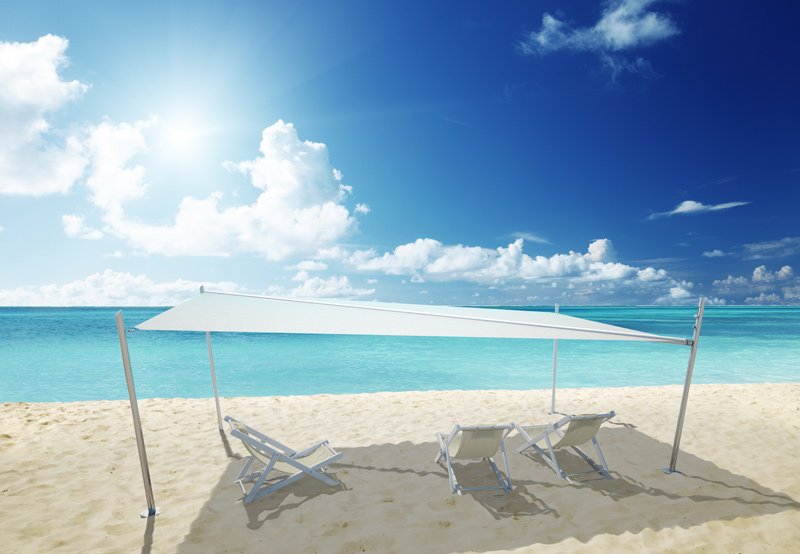 La struttura della vela Kheope è realizzata in acciaio Inox e alluminio, materiali che assicurano massima resistenza nel tempo e ottima tenuta agli agenti atmosferici, compresa la salsedine in ambienti marini.